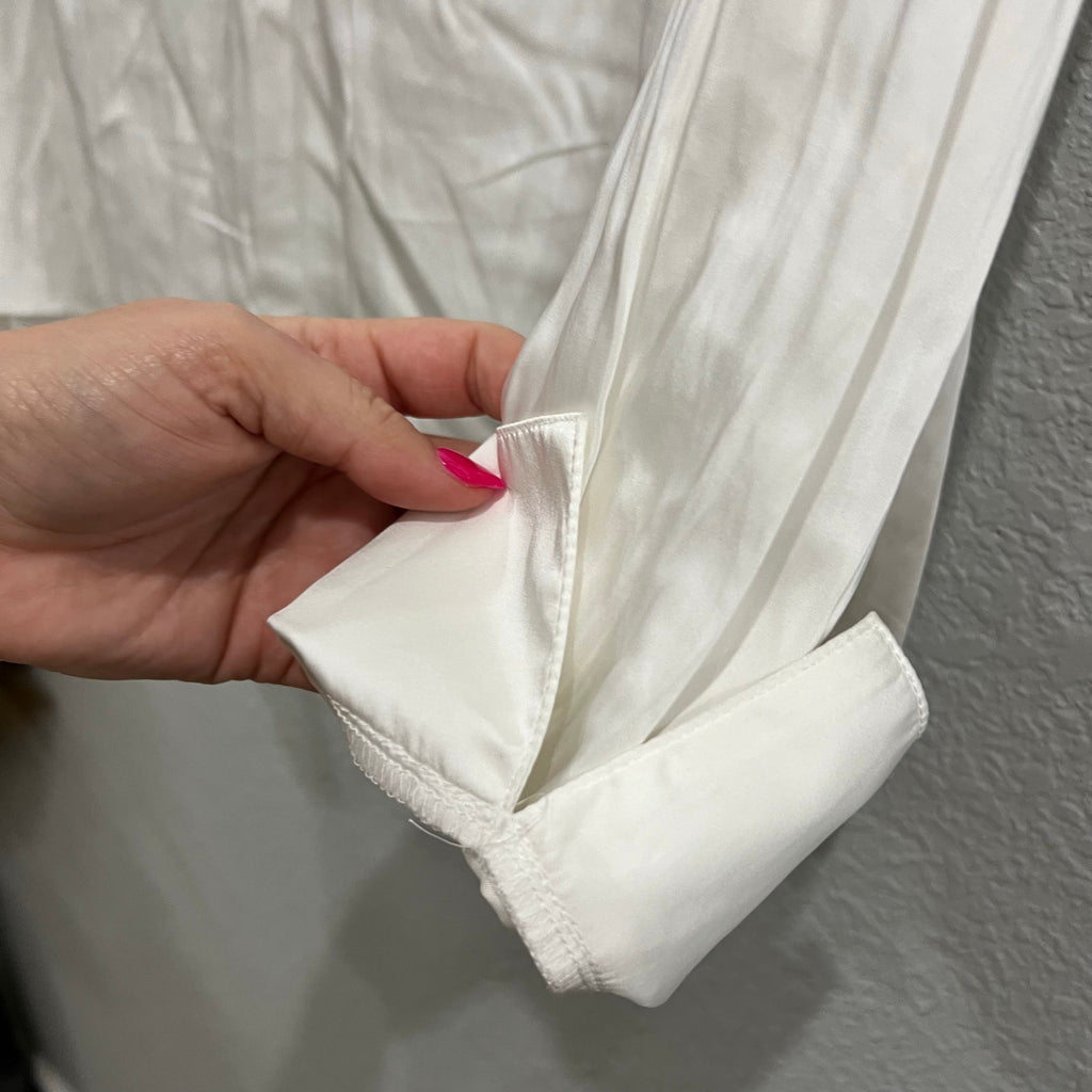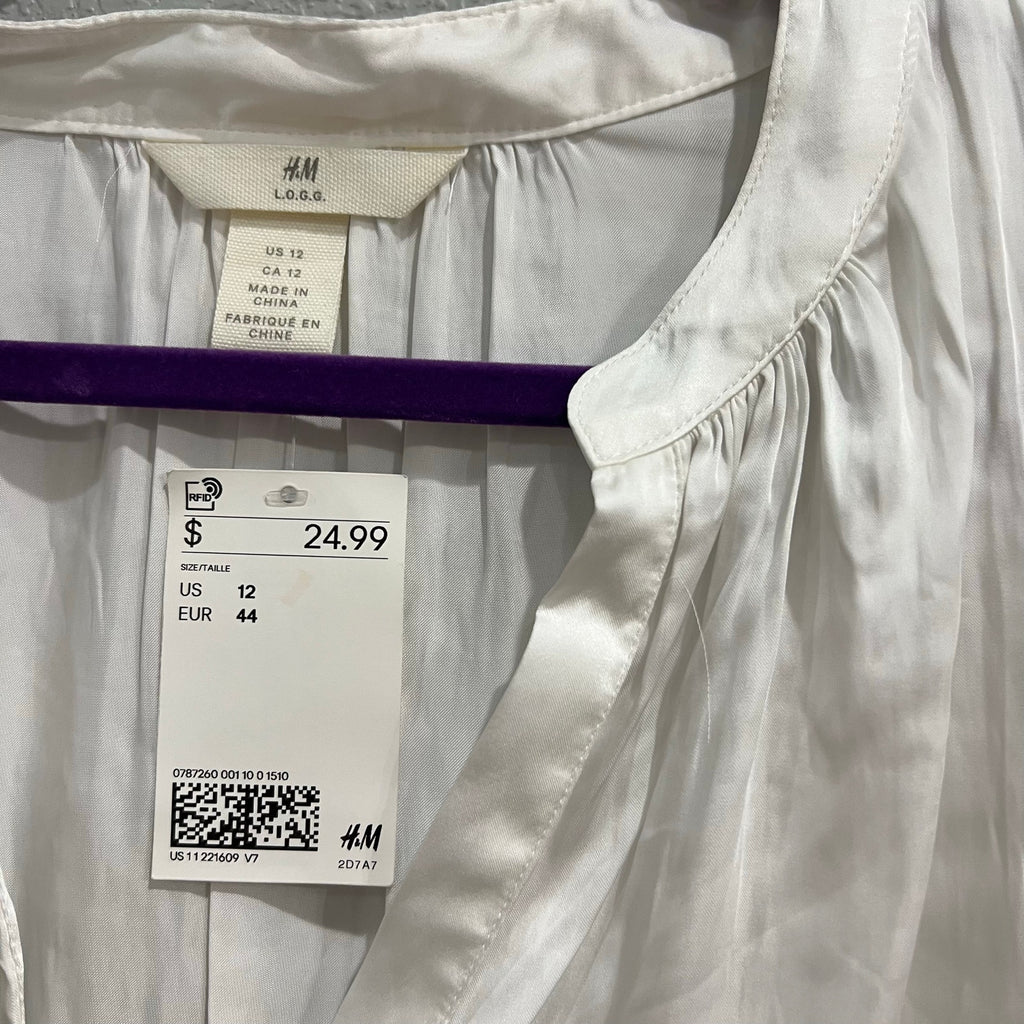 NWT H&M White Satin Long Sleeve V-Neck Blouse Size 12