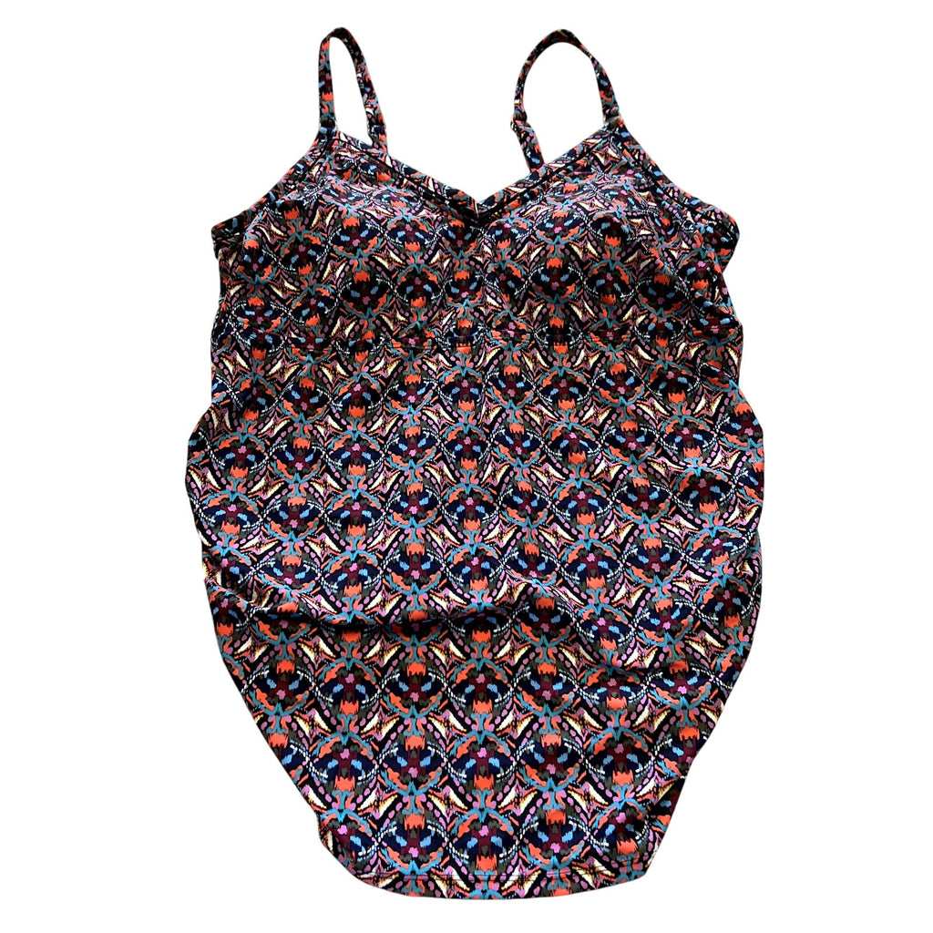 Fresh, bold, and ready for summer! This brand new tankini top features a stunning Ikat print in black, orange, and blue tones, designed to flatter and support your curves with confidence. Size 18W and new with tags—perfect for stylish sun-soaked days at the pool or beach.