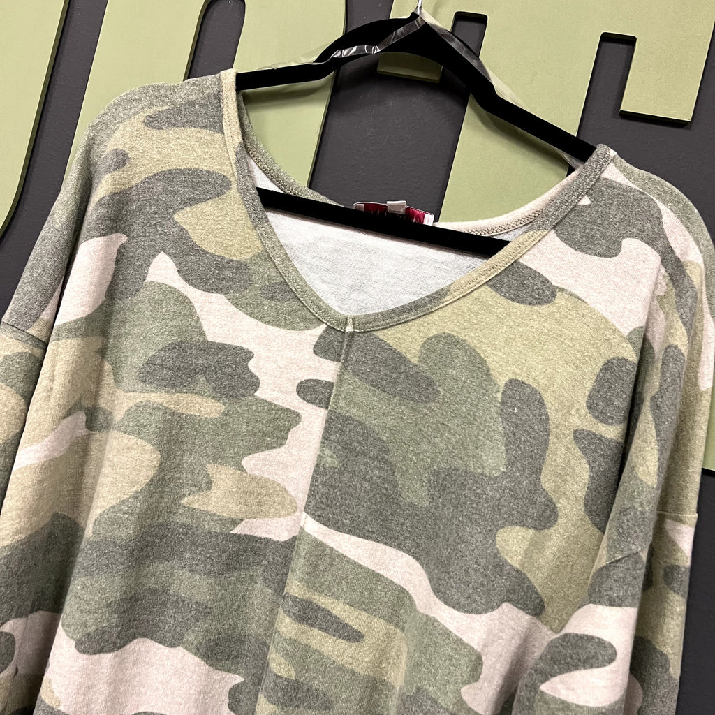 NWT New Directions Butter-Soft Camo V-Neck Long Sleeve Top – Size 3XL