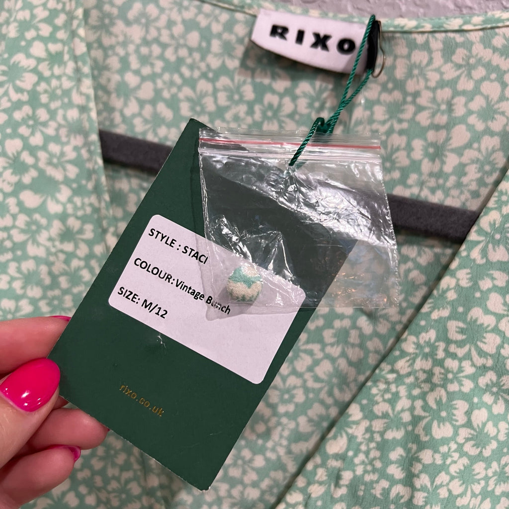 NWT Rixo Staci Green Floral Button Front Midi Dress Medium