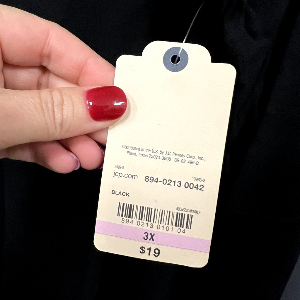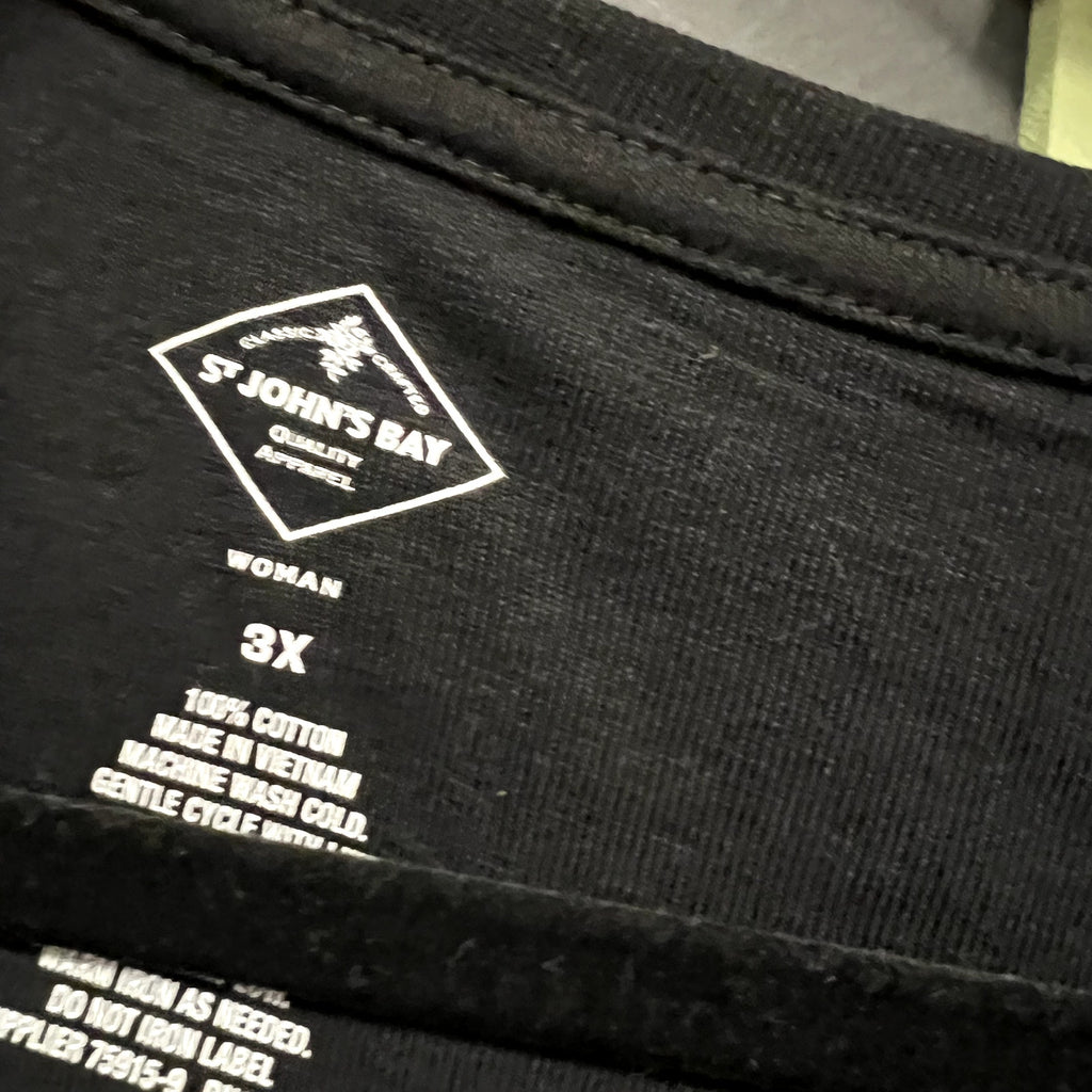 NWT St. John’s Bay Long-Sleeve Basic V-Neck Top – Black – Size 3XL