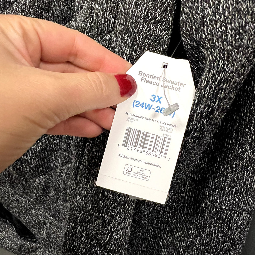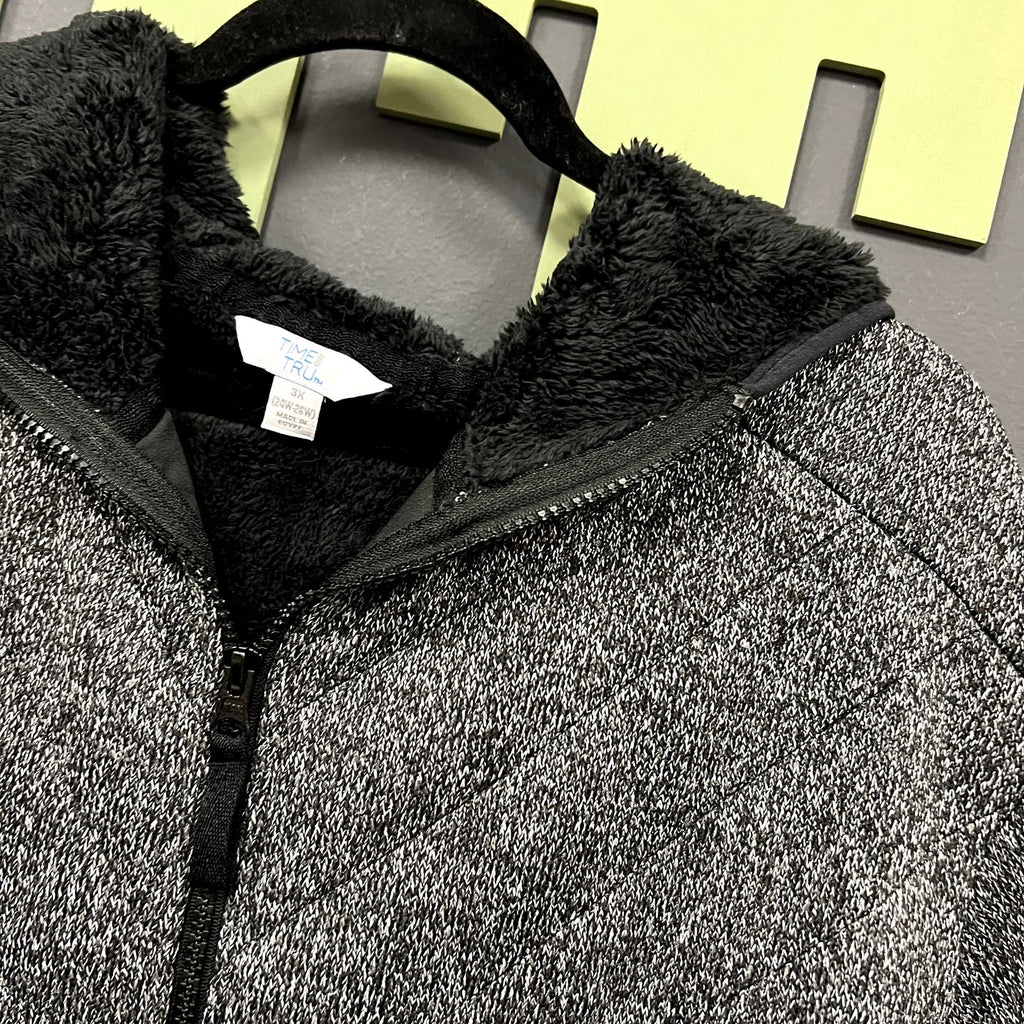 NWT Time & Tru Sherpa-Lined Black Quilted Full-Zip Jacket – Size 3XL