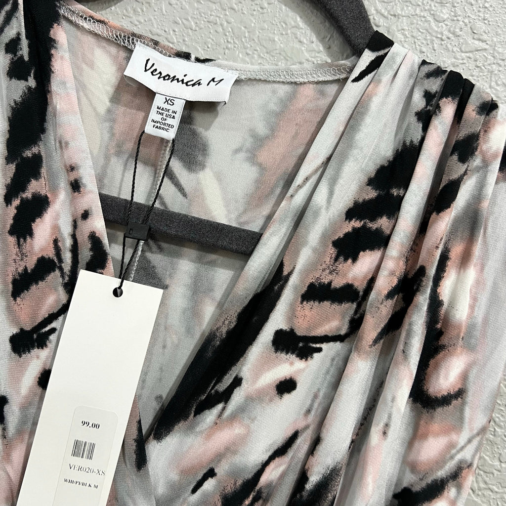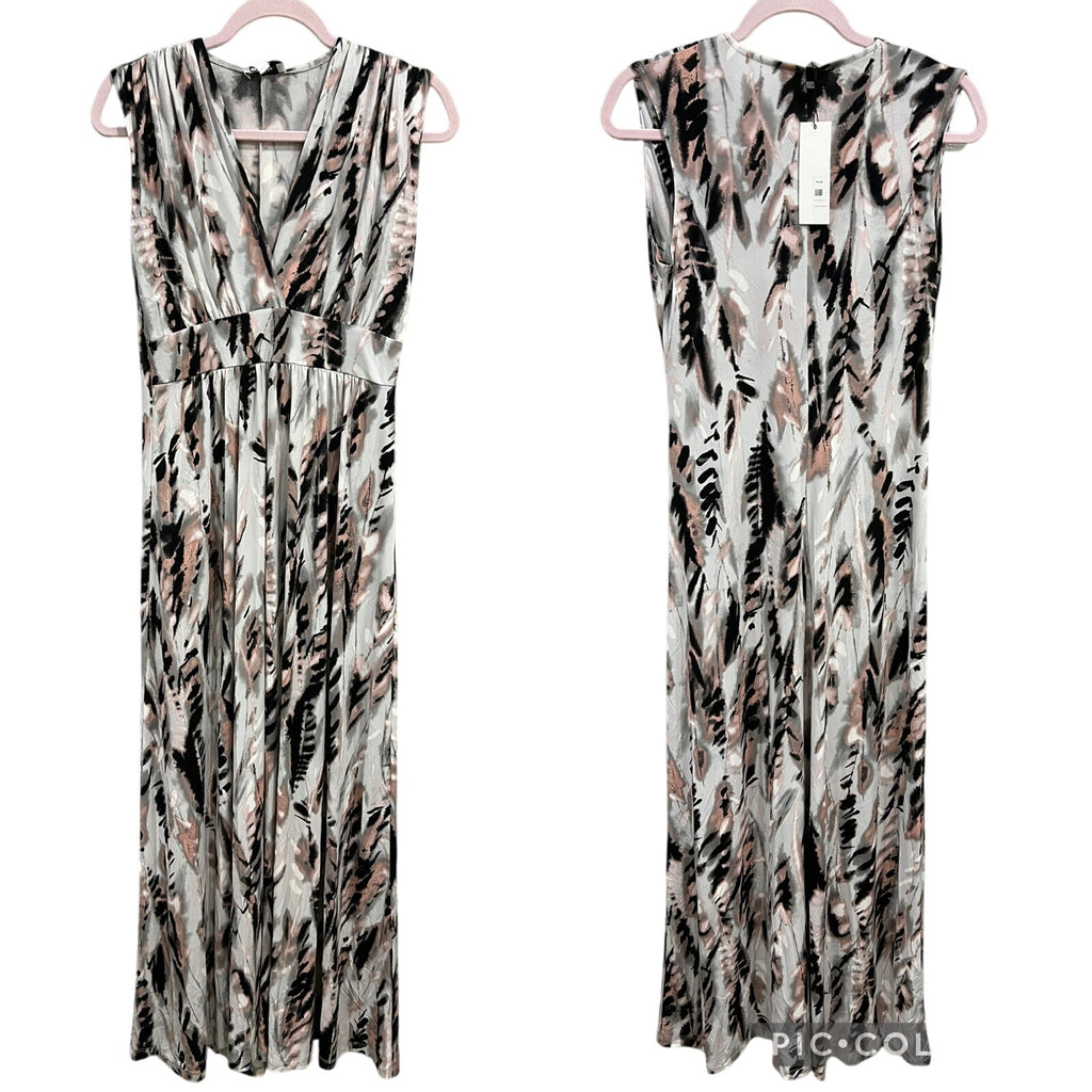 NWT Veronica M Pink Black Gray Brush Stroke V-Neck Maxi Dress XS