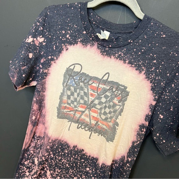 Race Cars & Freedom Bleached Crew Neck Graphic Tee Small
