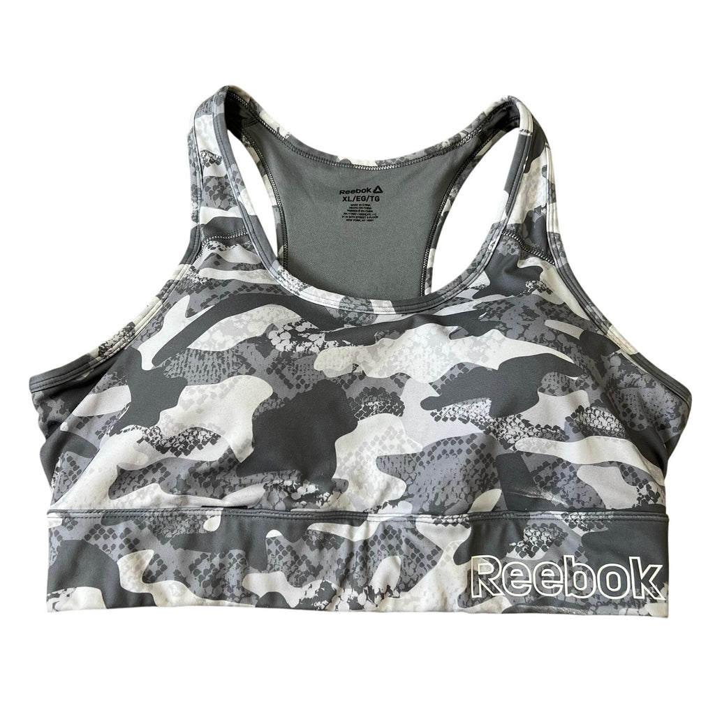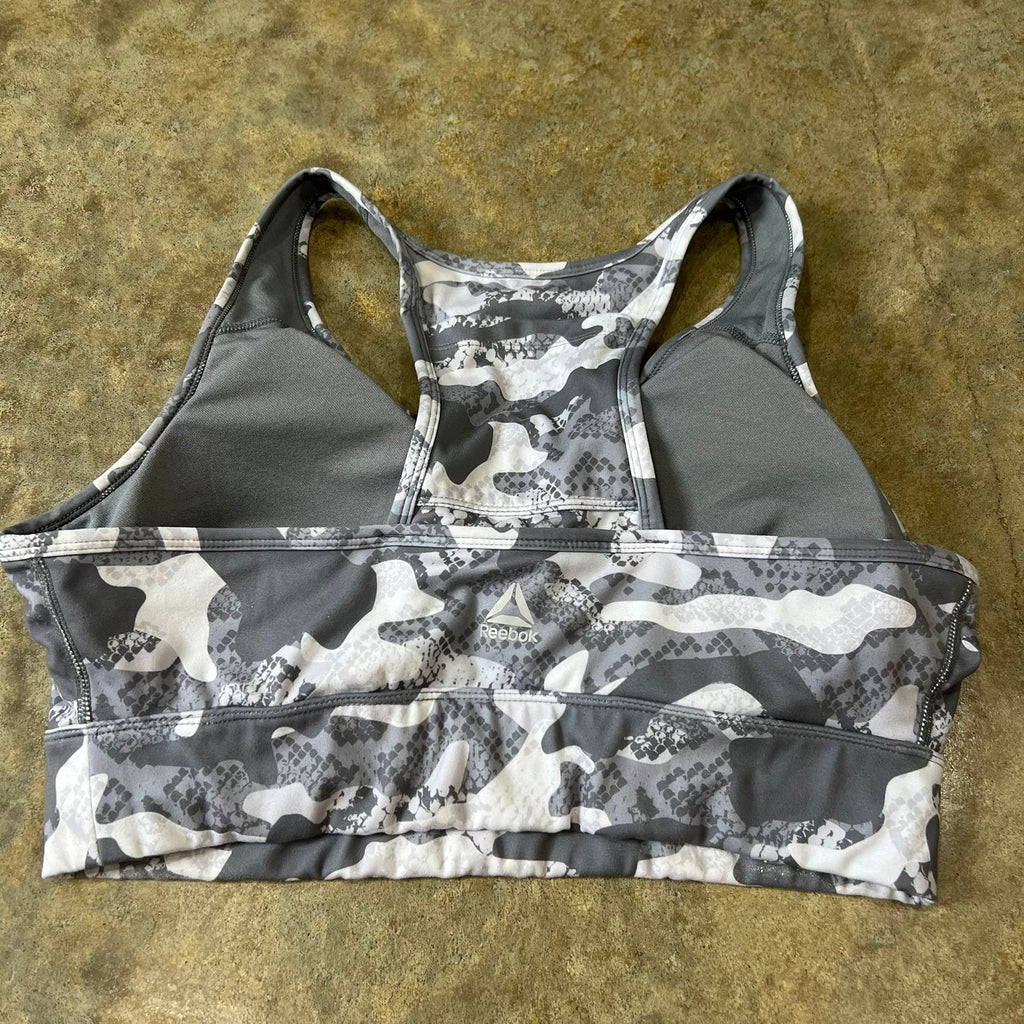 This Reebok marble padded sports bra in XL combines performance and everyday comfort with a sleek, modern look. The marble pattern adds subtle style while the padded design offers support and shape for low- to medium-impact activities.