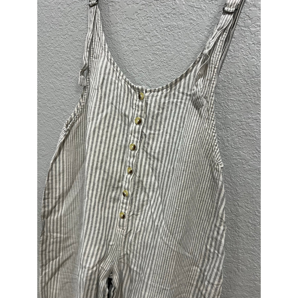 These Revolve Amuse Society linen striped overalls offer a relaxed, effortlessly chic look. The ivory and light gray stripes give them a soft, neutral palette, perfect for casual days or warm-weather outings.