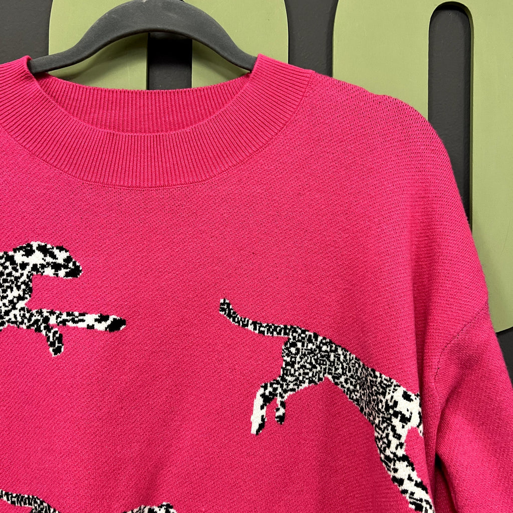 She + Sky Boutique Hot Pink Leopard Oversized Sweater – Small