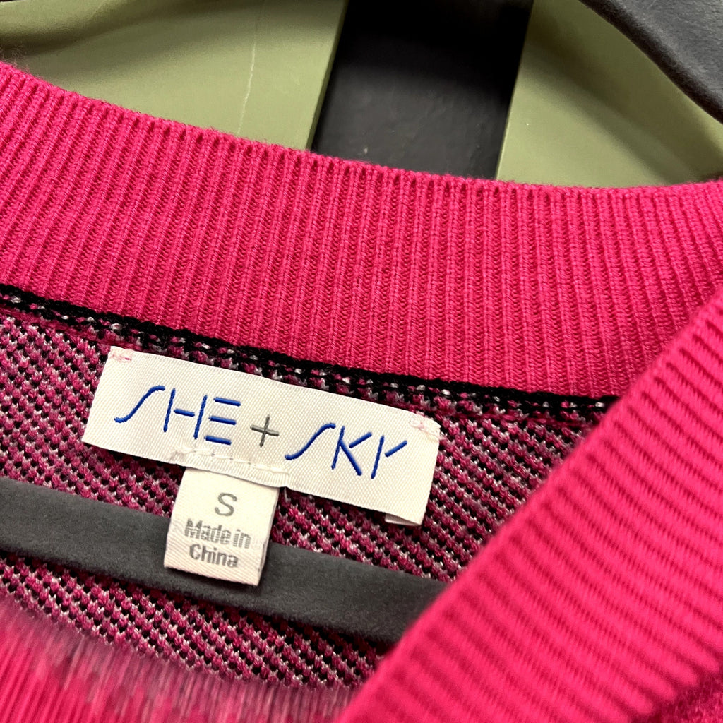 Bright, playful, and cozy — this She + Sky sweater features a bold hot pink base with an all-over leopard print, giving it a fun, statement-making vibe. The oversized fit and soft knit make it perfect for layering or wearing on its own for a relaxed, stylish look.