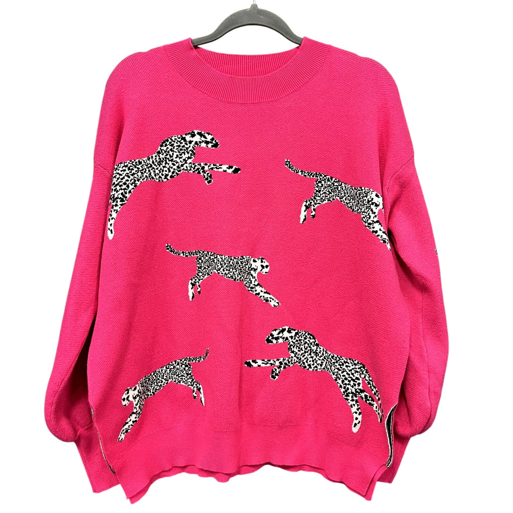 She + Sky Boutique Hot Pink Leopard Oversized Sweater Small