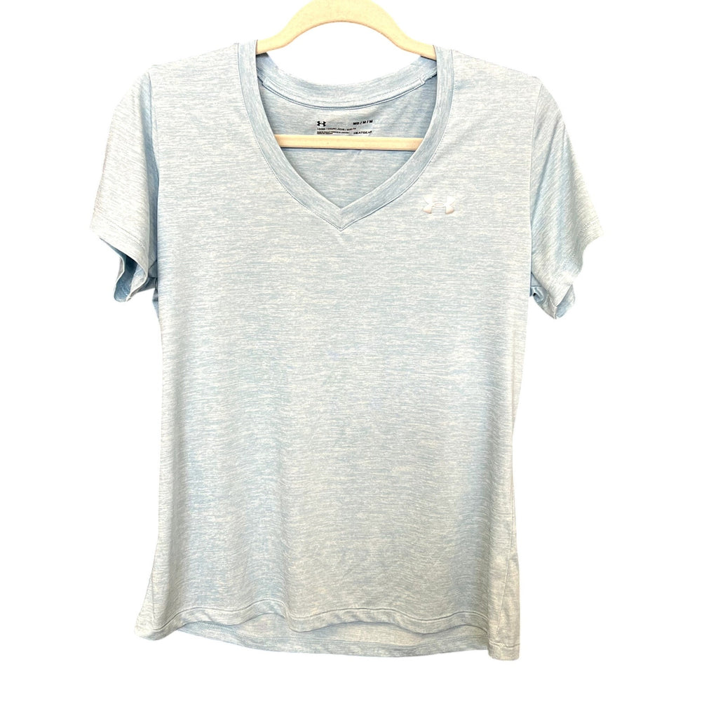 Under Armour Women's Loose Fit Heat Gear Light Blue V-Neck Top Medium