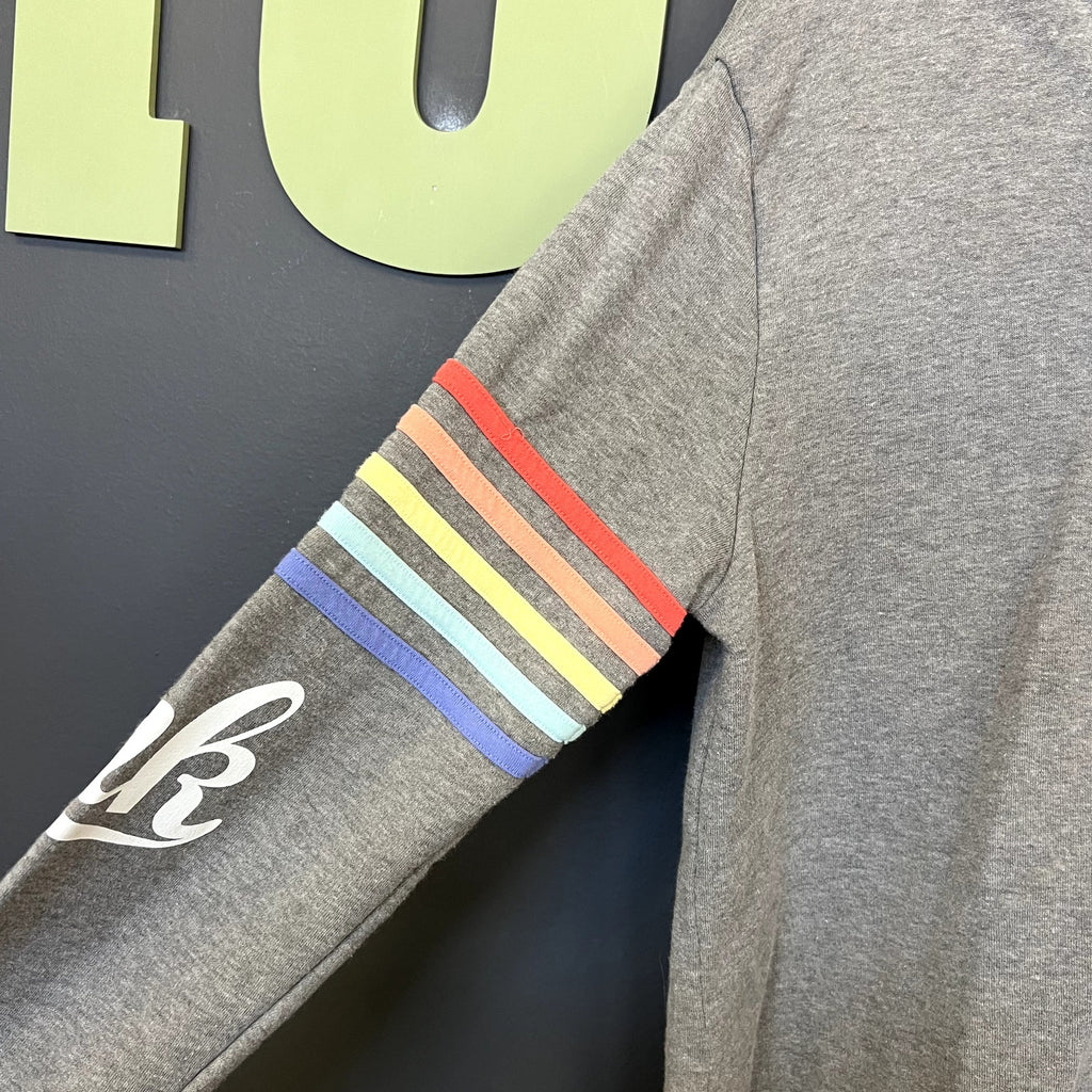 Add a fun pop of color and Y2K vibes to your wardrobe with this Victoria’s Secret PINK full-zip gray jacket in size Large. The soft gray fabric is complemented by bold rainbow accents on the sleeve, giving it a playful, standout look. With its comfy fit and zip-up design, it’s perfect for casual outings, lounging, or layering over tanks and tees. An easy go-to piece for everyday style.