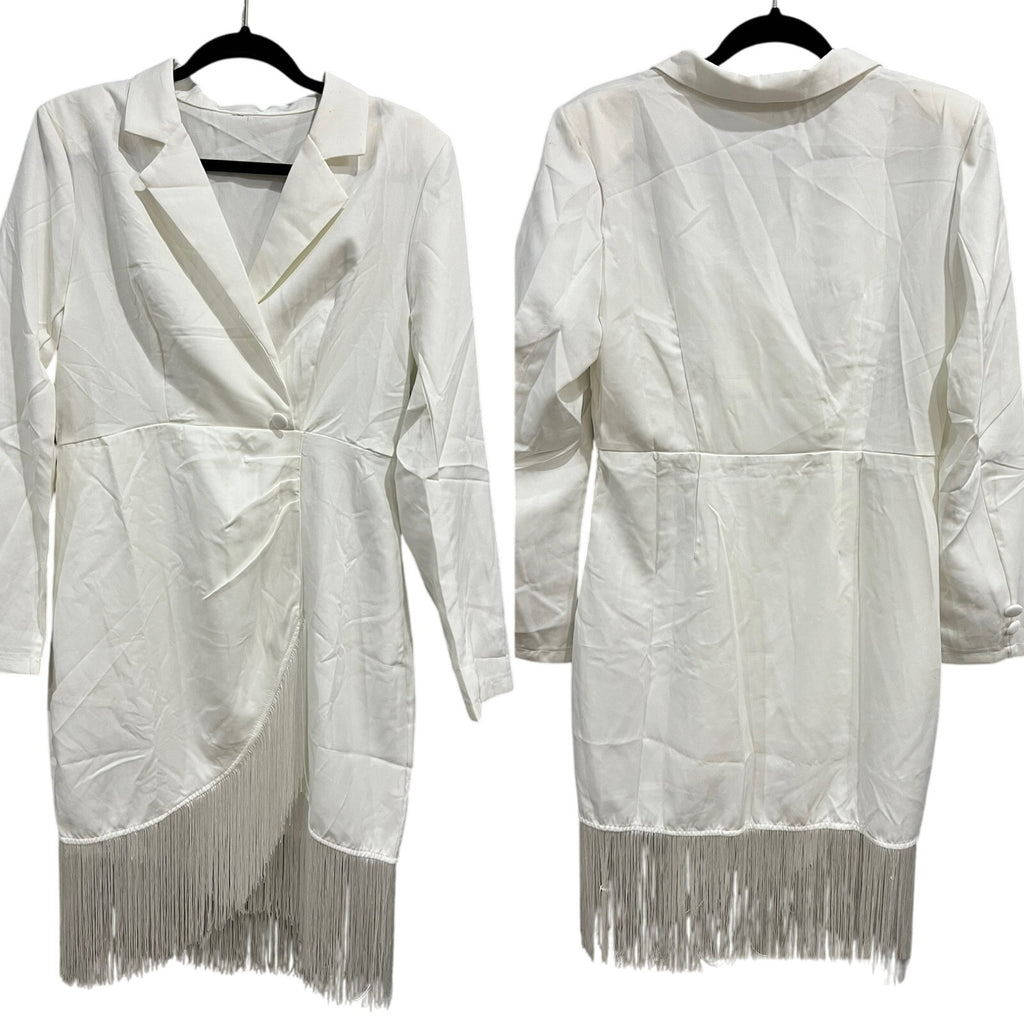 Women's Long Sleeve Fringe Collared White Western Dress Large