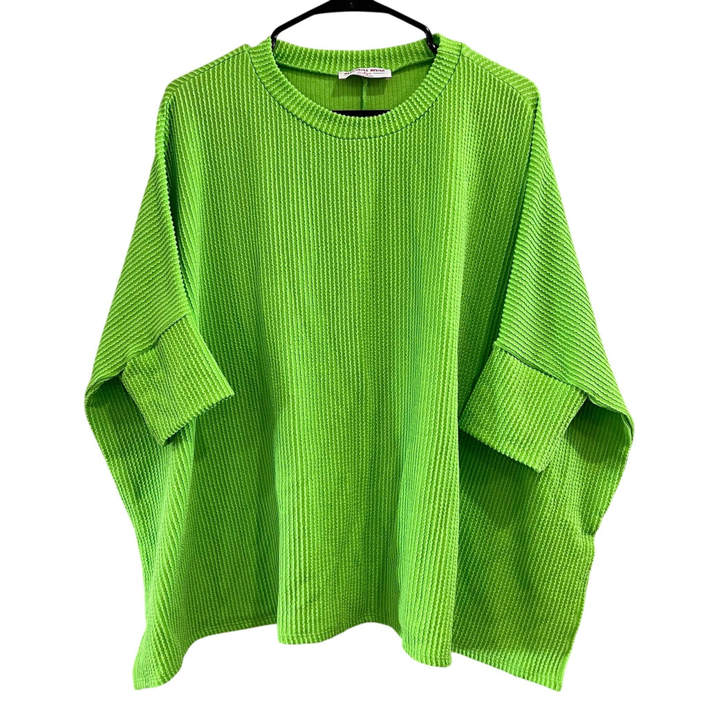 This women’s green ribbed short-sleeve dolman top in one size offers effortless style with a relaxed, comfortable fit. The ribbed texture adds subtle detail, while the dolman sleeves create a flattering, easy silhouette that drapes beautifully.