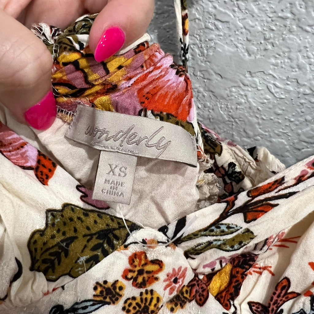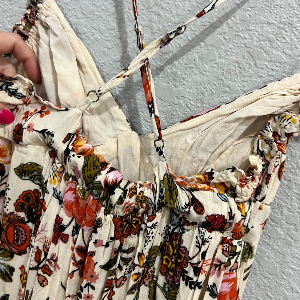 Wonderly Floral Ivory Spaghetti Strap Bohemian Dress XS