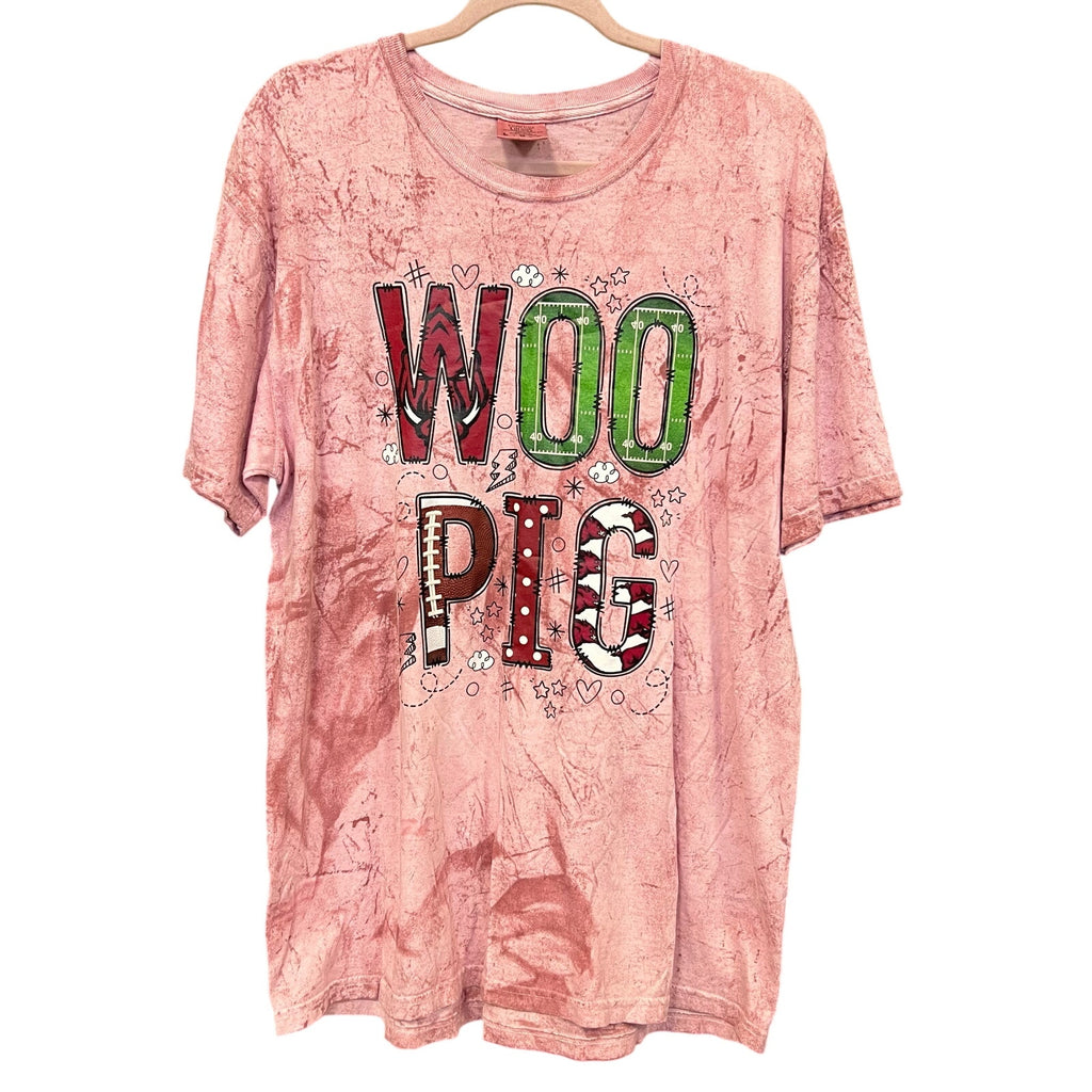 Woo Pig Football Comfort Colors Red Tie Dye Graphic Tee – Size Large