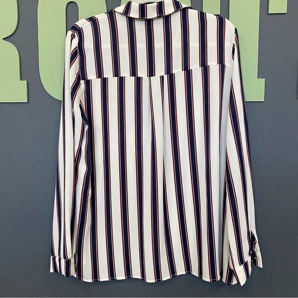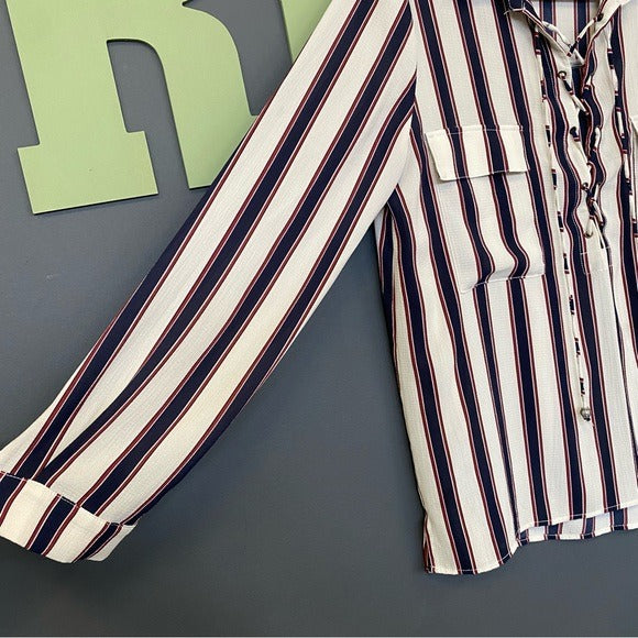 Entro Lace Up Front White V-Neck Collared Blouse Large