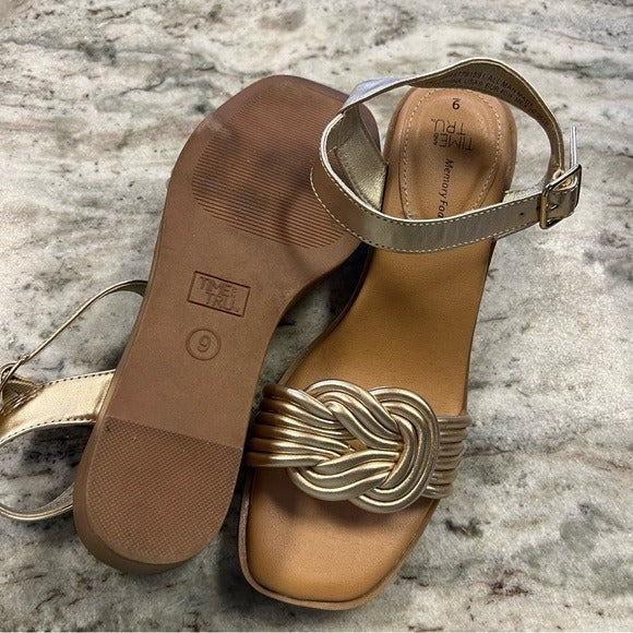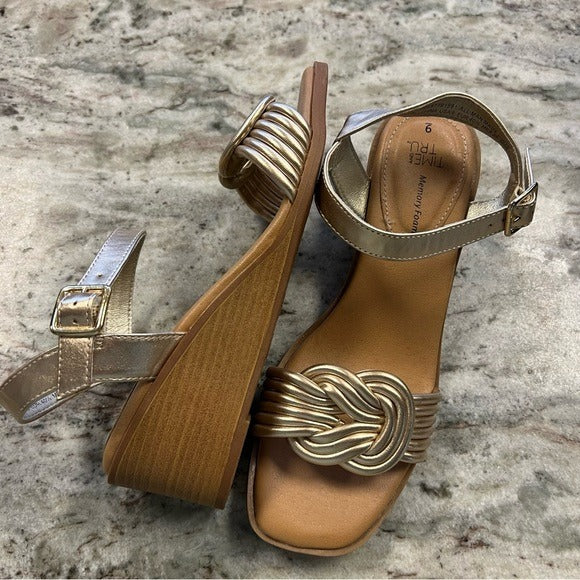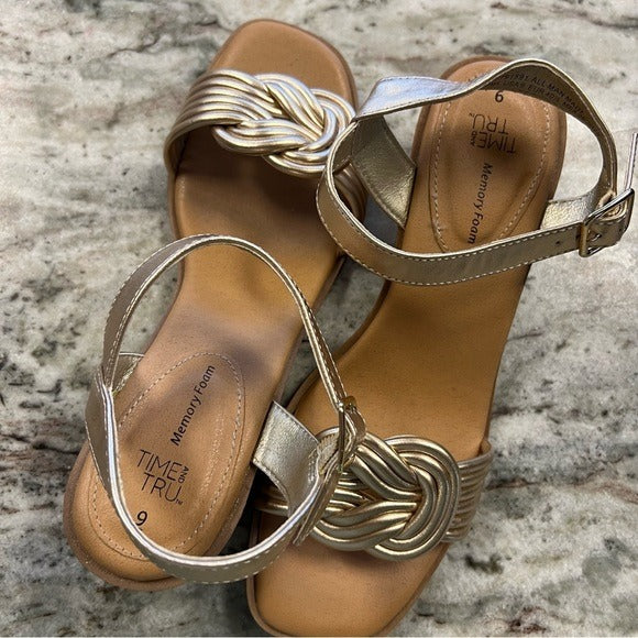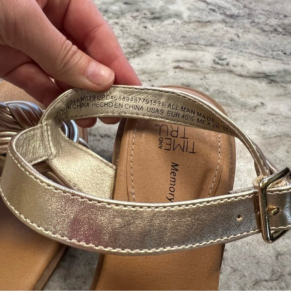 Time and Tru Memory Foam Gold Wedge Sandals Size 9